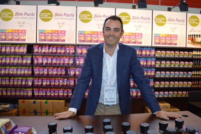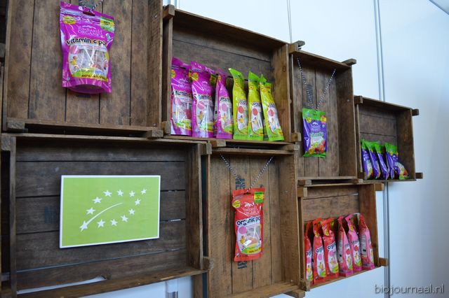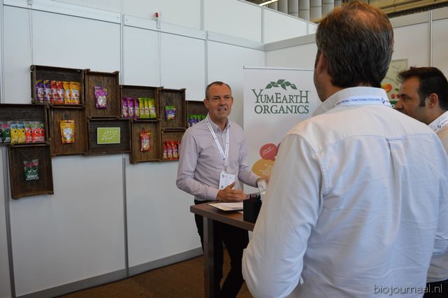Milko Spee stond namens BetterCandy op de beurs. Hij had onder andere de biologische snoepjes van het Amerikaanse merk YumEarth bij.