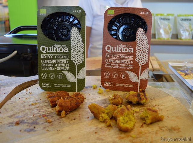 Bij NatureCrops kon men proeven van de glutenvrije en vegan quinoaburgers.