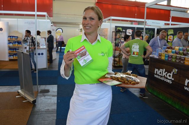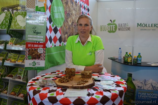 Susanne de Raaij van Biobite dit keer in haar stand. Biobite is gemaakt van haver, gierst en rijk gevuld met noten, zaden, pitten, gedroogde vruchten, bessen, specerijen en perendiksap.