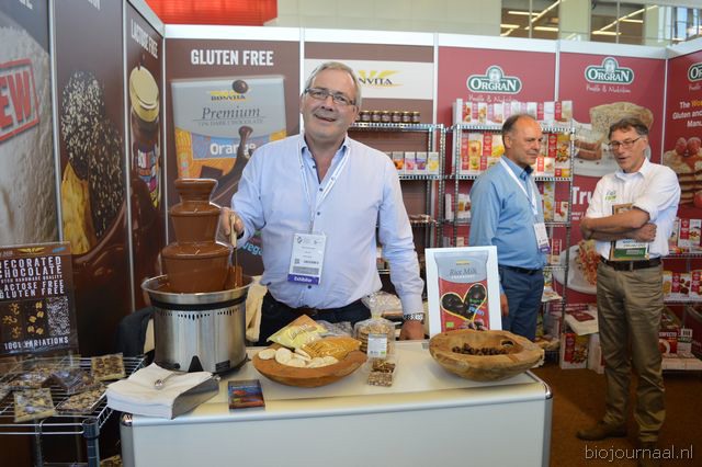 Het Duitse chocolademerk Vivani liet van diverse biologische chocoladerepen proeven. Rechts 'chief director' Andreas Meyer.