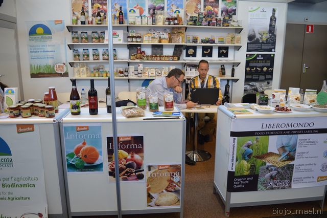 Een grote diversiteit aan bio-producten in de combinatiestand van Demeter Ass. Italia.