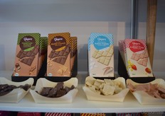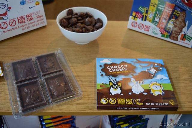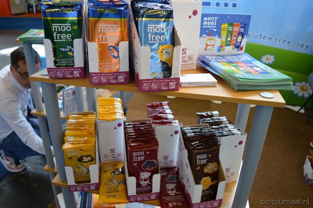 Nog wat biologische chocolade: Het Britse Moo Free presenteerde op de beurs hun chocoladelijn voor kinderen.