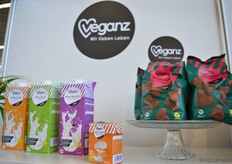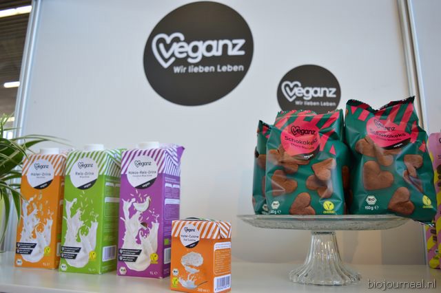Het kleurrijke bio-assortiment van Veganz bestaat onder meer uit haver- en rijstdrinks en diverse chocoladeproducten.