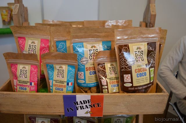 "Biologische crackers van het Franse merk Bis Cru. "Onze producten zijn binnenkort ook op de Nederlandse markt verkrijgbaar, we hebben net een contract getekend met een distributeur."