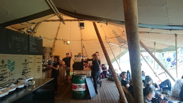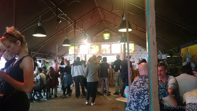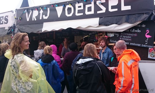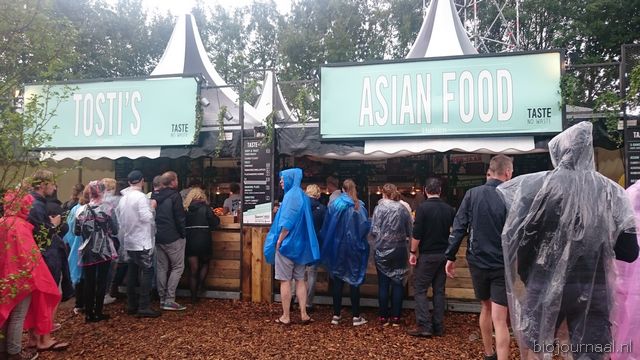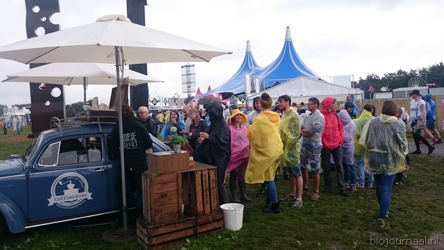 Een lange rij voor een kopje koffie bij de KoffieKever (van 'Koffiekoppen'). Daar werd ook een biologisch product aangetroffen. De Koffiekever kan overigens (optioneel) ook biologische sappen schenken.