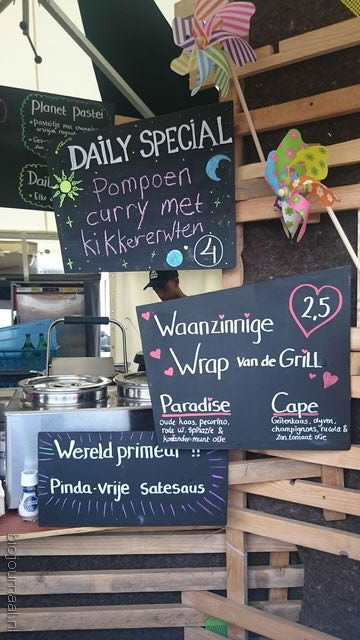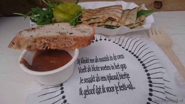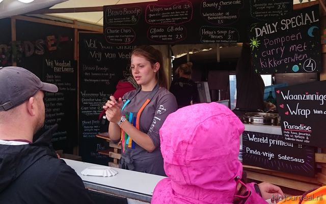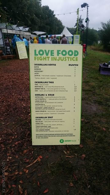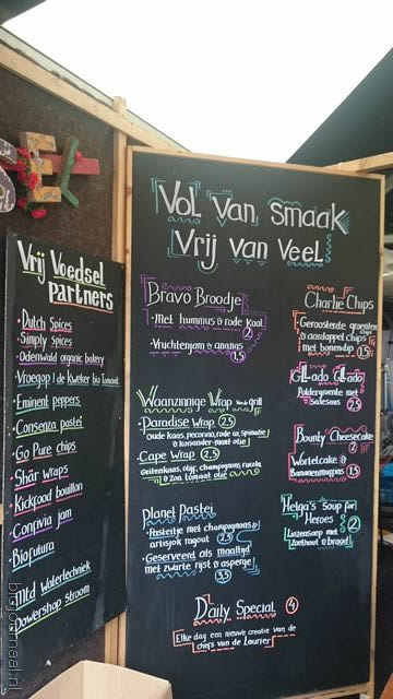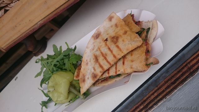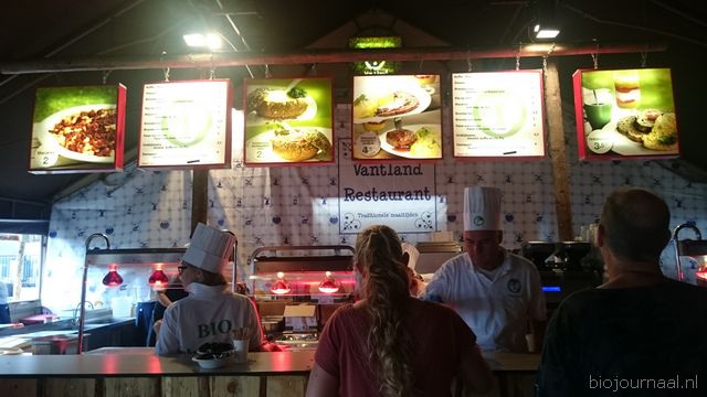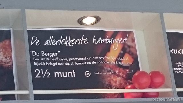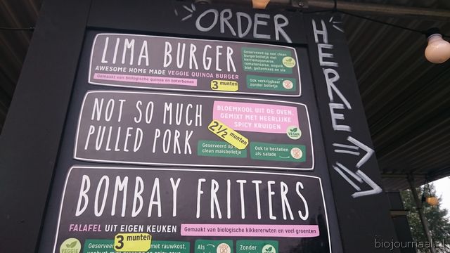 Dit werd op de menukaart gecommuniceerd. Zo is de falafel uit eigen keuken gemaakt van biologische kikkererwten. En de Lima Burger is gemaakt van biologische quinoa en boterbonen.