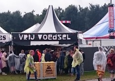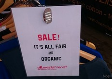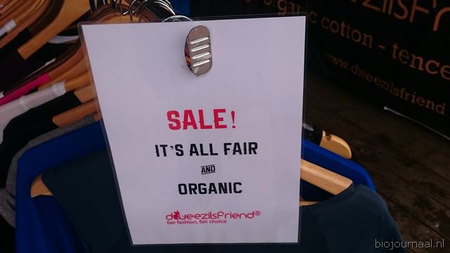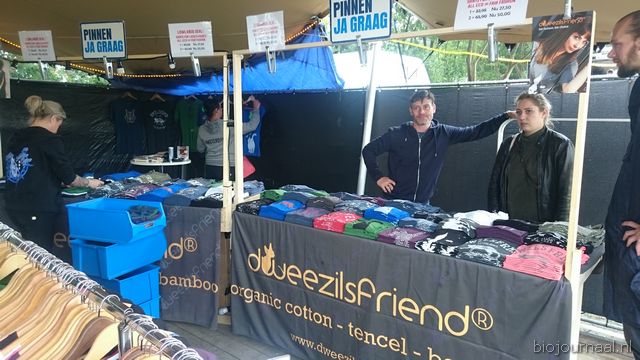 Natgeregende bezoekers konden in de kraam van Dweezilsfriend terecht voor een droog bio-katoenen T-shirt.