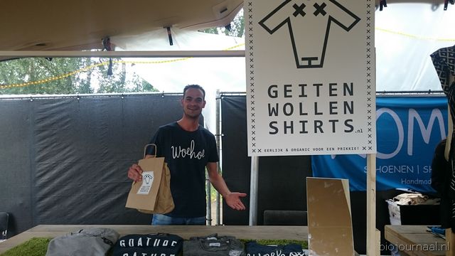 Daan Smits stond met de T-shirts van Geitenwollenshirts.nl op Lowlands. De Geitenwollenwinkel is te vinden aan de Utrechtsestraat 37 in Amsterdam.