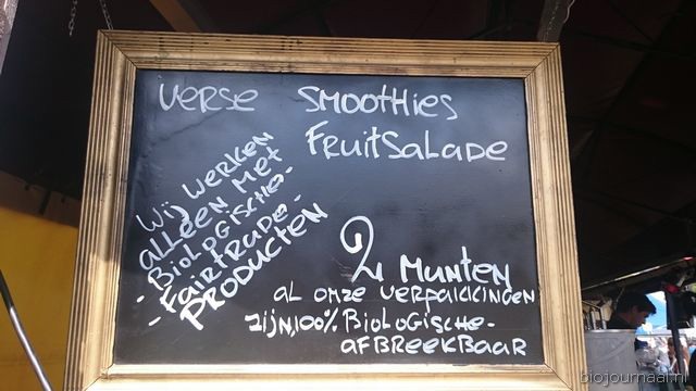 "Bij Açai Events kon men terecht voor biologische smoothies met açai. "Ook diverse andere soorten zijn biologisch. Helaas kunnen wij nog niet alle fruitblokken biologisch leveren, maar hier zijn we mee bezig", aldus Gijsbert van Açai Events."