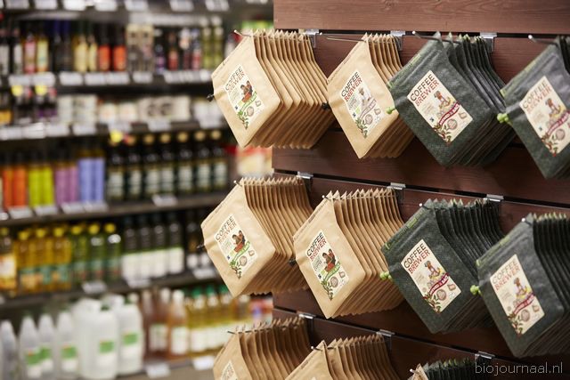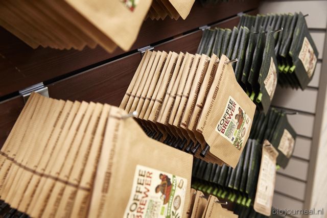 Biologische koffie in een voor Nederland onbekende verpakking.