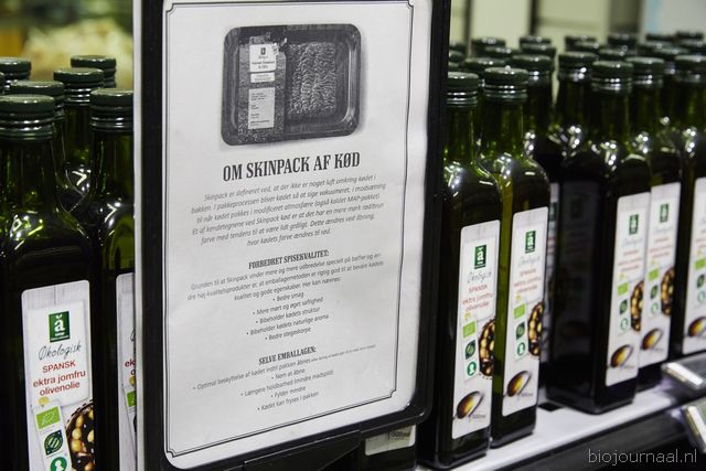 Met informatiebordjes wordt uitgelegd aan de consument wat het voordeel is van een verpakking.