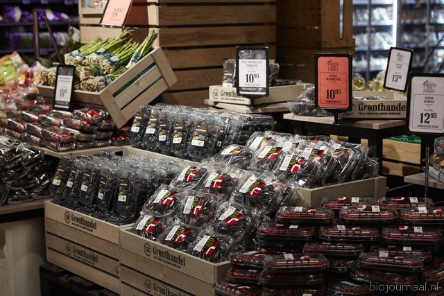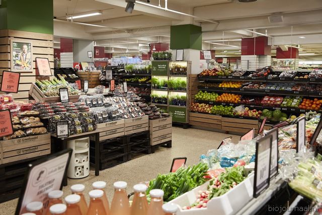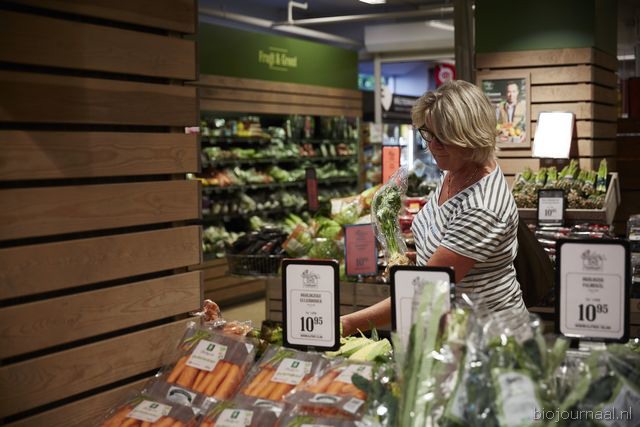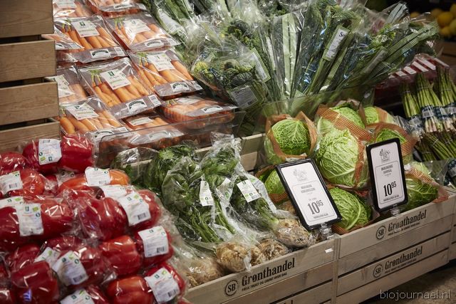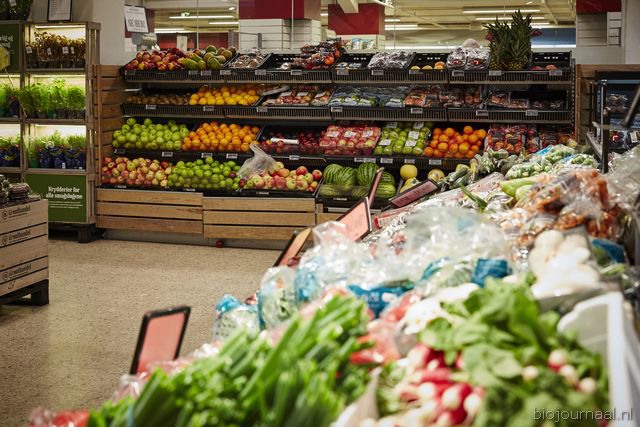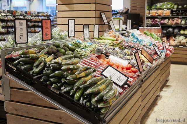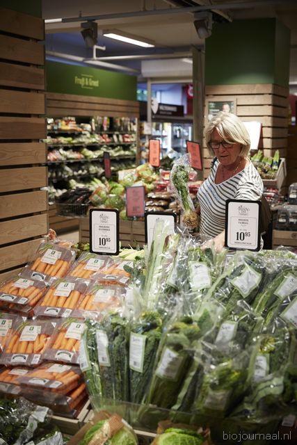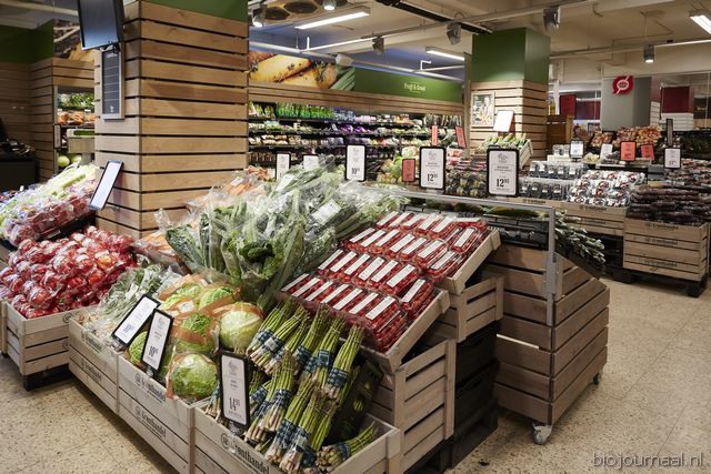 Ook op de AGF-afdeling zijn veel biologische producten te vinden.
