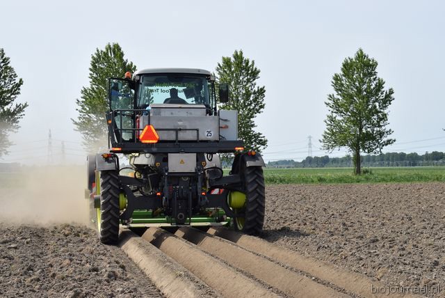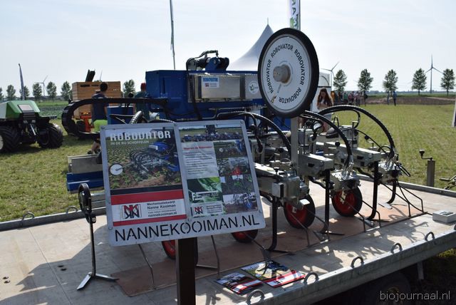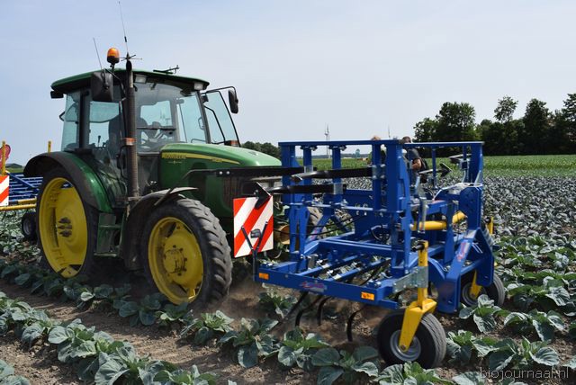 "Demo van de Robovator bij Mechanisatiebedrijf Nanne Kooiman, een cameragestuurde schoffelmachine. Wim Kooiman: "De machine maakt geen kleuronderscheid en herkent iedere plant individueel."