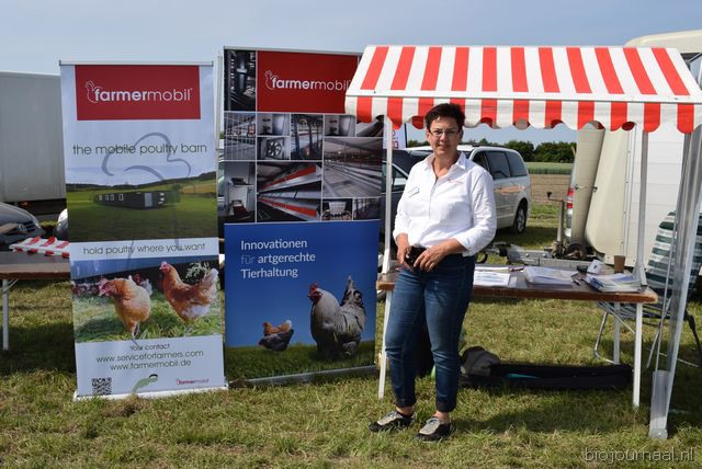 "Ina van Goor van Service for Farmers vertelt over een verrijdbare pluimveestal: farmermobil. "Zo kunnen landbouwers hun land dubbel en dwars benutten. Dit stimuleert verbreding bij gemengde bedrijven, in plaats van intensivering."