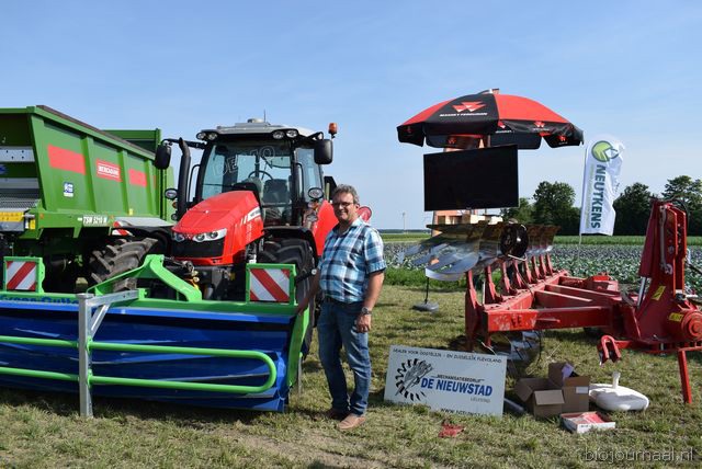 "Bram op 't Hof van De Nieuwstad toont de Green-Cutter. "Door de combinatie afsnijden en drogen krijg je een veel beter resultaat. Combineer de Green-Cutter met een ploeg en je kunt in een gang meerdere handelingen uitvoeren. Dat levert een forse kosten- en tijdbesparing op en ontziet de bodem."
