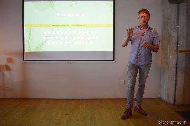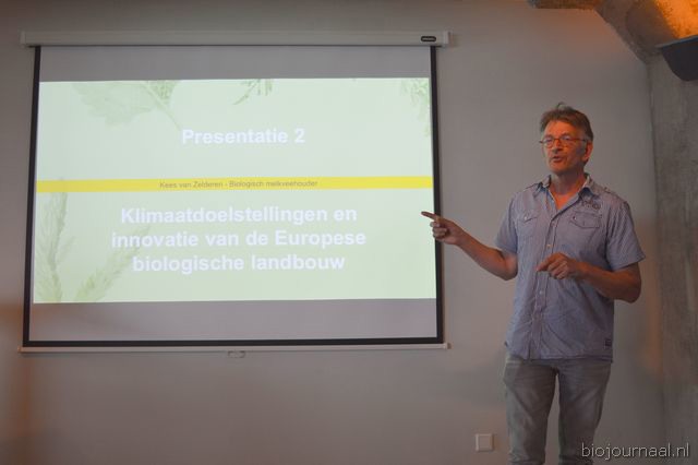 Na Hans was het de beurt aan Kees van Zelderen, biologisch melkveehouder, bestuurslid Biohuis en voorzitter van de werkgroep Organic Farming van EU's Copa Cogeca in Brussel. Zijn onderwerp: 'Klimaatdoelstellingen en innovatie van de Europese biologische landbouw.'