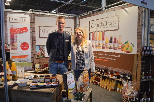 "Corné Prins en Annelia Dekker van 'sLandsBeste. Annelia: "We hebben zowel ons biologische als reguliere aanbod meegenomen. De één zoekt er immers wel naar, de ander niet."