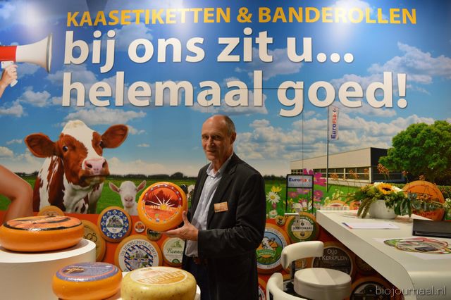 Kees Oudshoorn van Euroflex laat één van de kaasetiketten zien die zij voor onder meer biologische kaasproducenten maken.