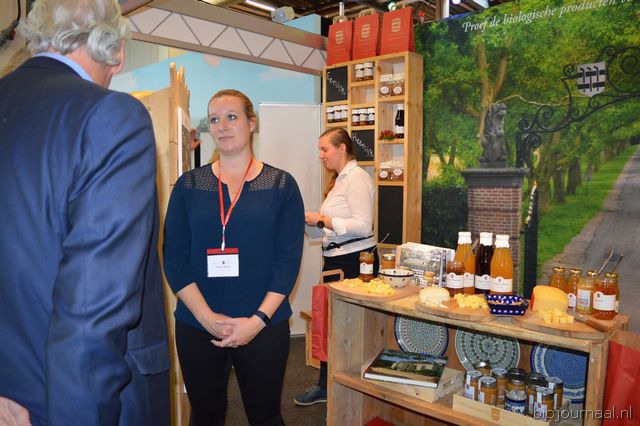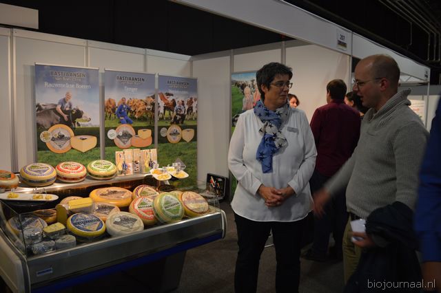 Bio-boerin Irene van de Voort in de stand van de Bond van Boerderij Zuivelbereiders.