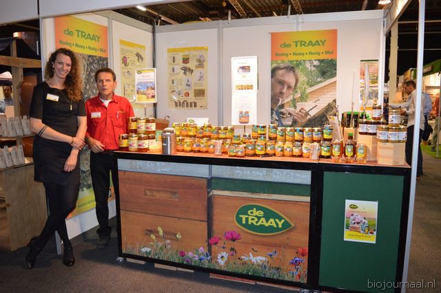 "Eveline Renders en Wim Roeleveld stonden naast imkerij de Traay op de beurs. Zij presenteerden de nieuwe honing met cranberry. "Van het sap maken we poeder en dit verwerken we in de honing."