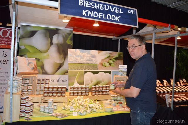 Arjan Biesheuvel met één van de biologische producten uit het assortiment van Biesheuvel Knoflook.