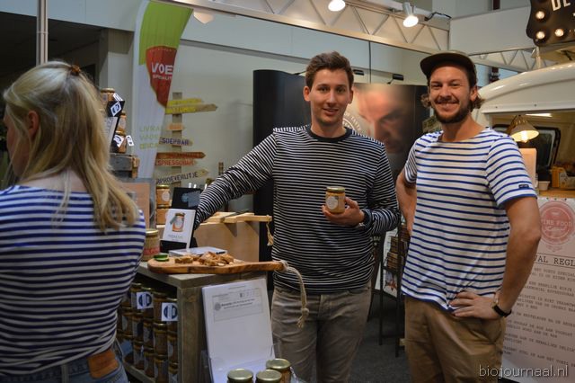 Berend van Zanten en Kay van Mourik debuteerden met hun biologische Zeemansboter op de Vakbeurs Foodspecialiteiten. Naast de naturel pindakaas is sinds vorig jaar mei ook een chili-variant en een variant met rozijnen verkrijgbaar.