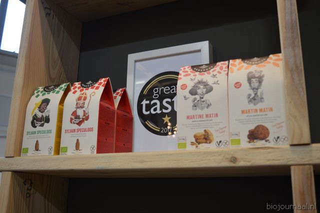 "Nieuw in de 'familie' zijn Martine en Martin Matin. Valentin: "Dit zijn biologische ontbijtkoekjes." En de koekjes aan de linkerkant zijn er speciaal voor de Sinterklaas-periode."