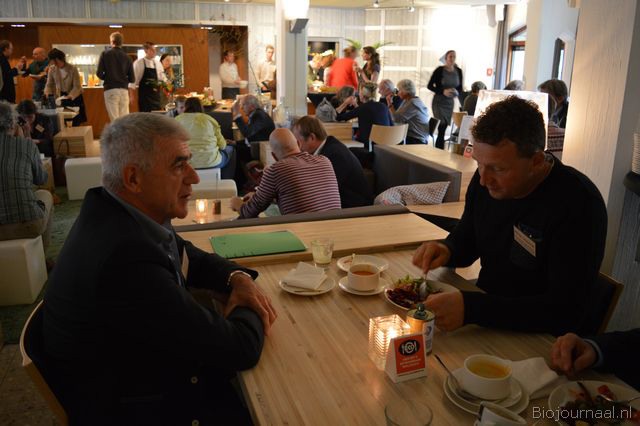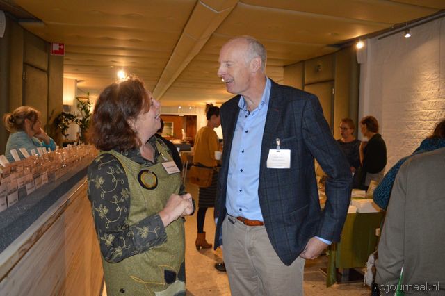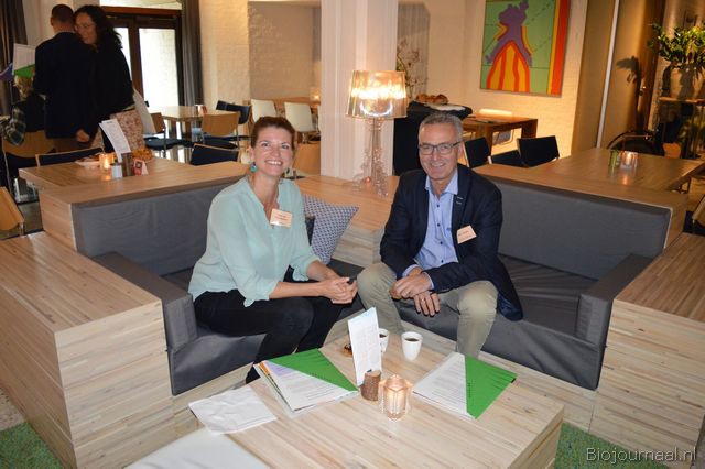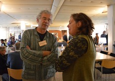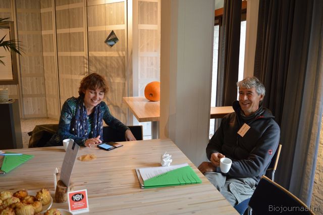 Olga van IJzendoorn (Machandel) voorafgaand aan het congres in gesprek met Jan Groen (Green Organics).