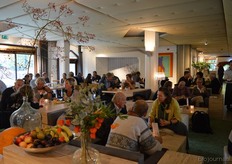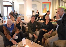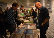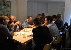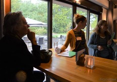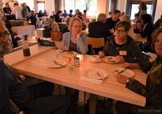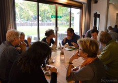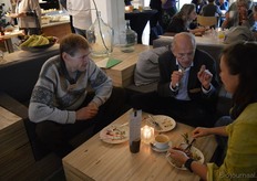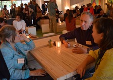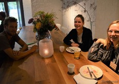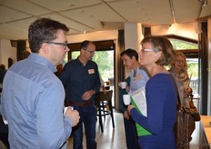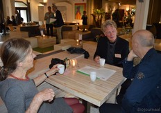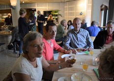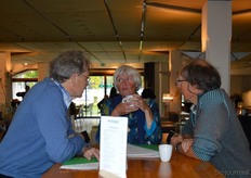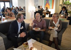 Poppe Braam (DO-IT) met Allard ten Dam en Ria van Engen die allebei namens coöperatieve groothandel De Nieuwe Band aanwezig waren. Rechts achter hen aan de tafel Wilma van den Oever (GroentenFruitHuis).