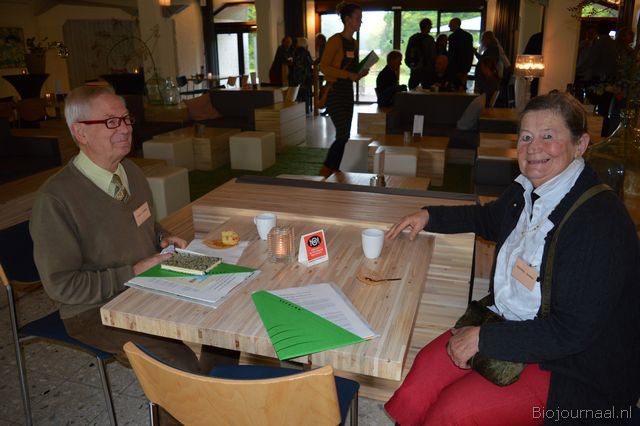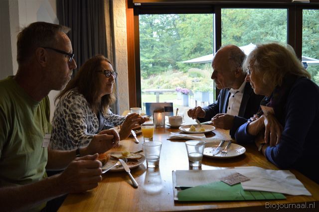 Ook consumenten Dolf en Suzanna Moulijn kwamen naar het congres. Zij zijn al heel lang lid van de Stichting Demeter. Naast hen Albert Poutsma en Alice Schots van Krant van de Aarde. Rechts Bert van Ruitenbeek.