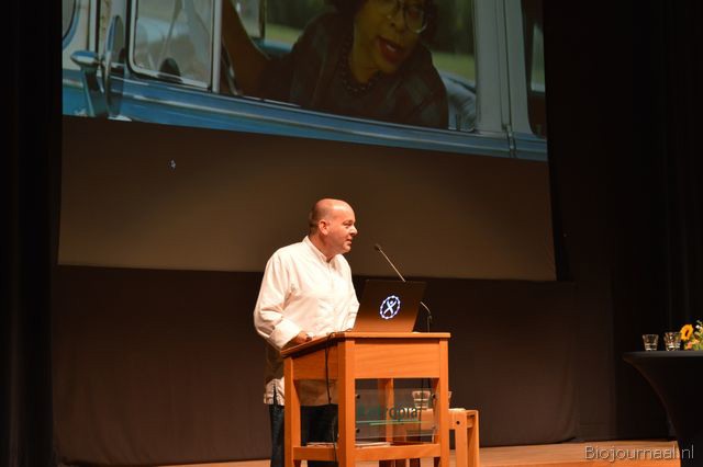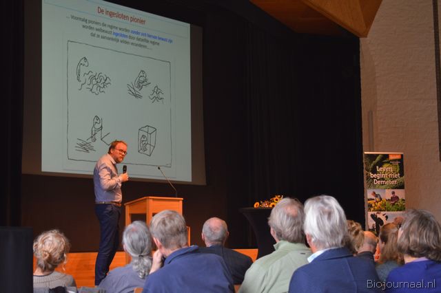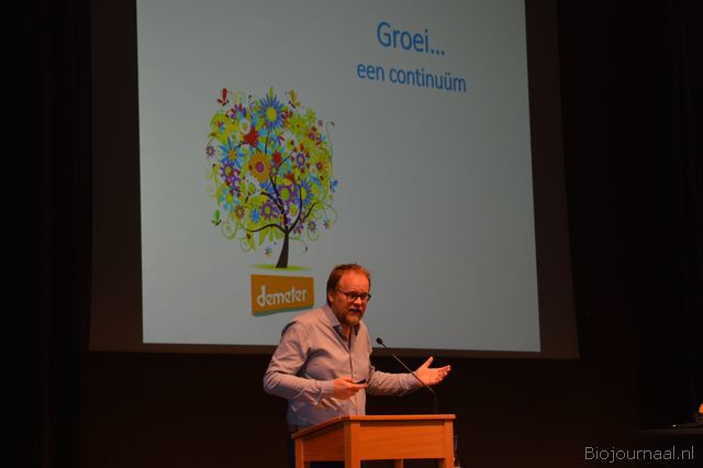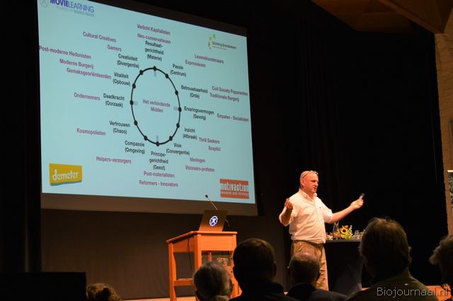 Na Marianne Thieme hield Ronald van Marlen (o.a. bestuurslid Stichting Demeter) een bevlogen betoog, waarin hij onder meer liet zien voor welke dilemma's de biologische sector als gevolg van de groei komt te staan.