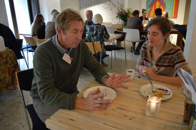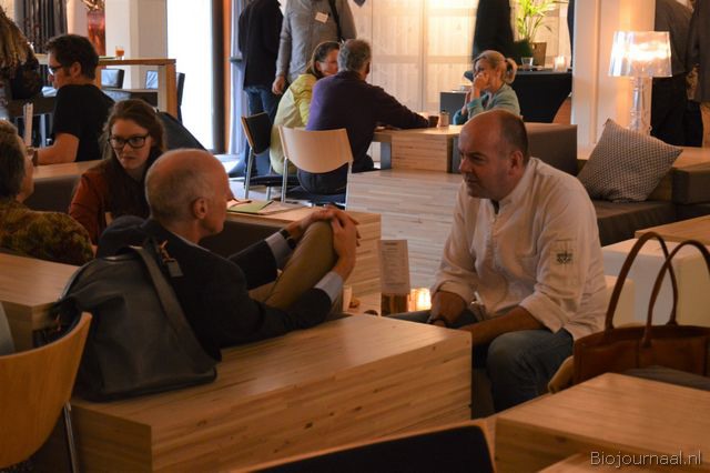 Chef-kok Eric van Veluwen verzorgde de inleiding voor de biodynamische lunch die daarna genuttigd kon worden.