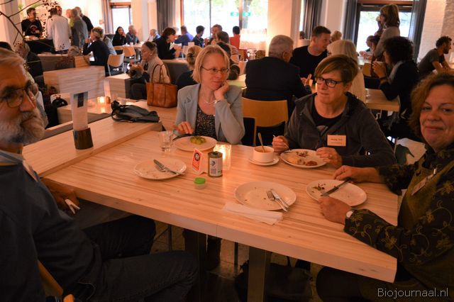 De lunch gaf de deelnemers de kans om het ochtendprogramma te bespreken en bij te praten.