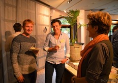 Kees Zuidgeest van Koppert Biological Systems met Leen Janmaat van Louis Bolk Instituut. Links Thomas te Grotenhuis (stagiair bij Louis Bolk Insituut).