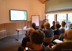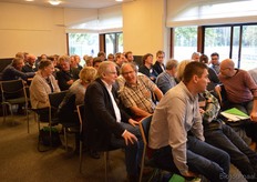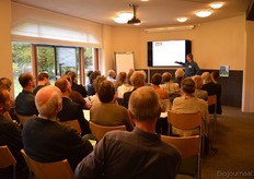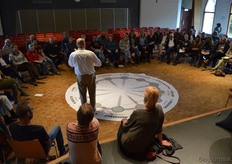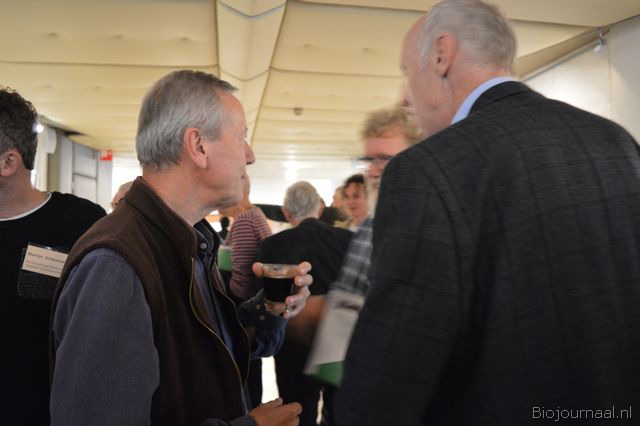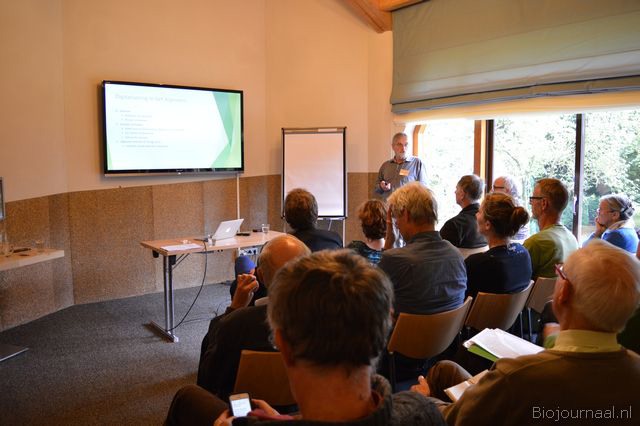 Hier plaatsten diverse aanwezigen de nodige kanttekeningen bij. Zij vertelden daarop hoe belangrijk de rol van de dieren is in de kringloop op het bedrijf. Op deze foto is Piet van IJzendoorn (de Zonnehoeve) aan het woord.