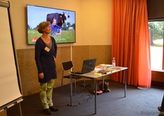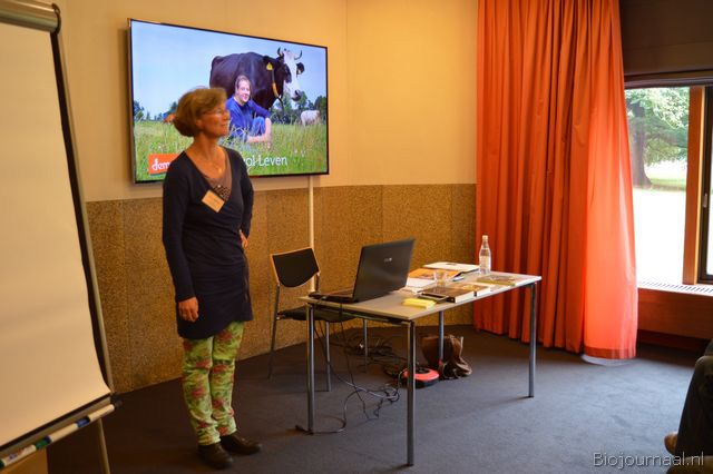 Ellen Winkel gaf in één van de kleine zalen de workshop 'Hoe vertellen we het biodynamische verhaal aan onze klanten?'.