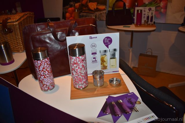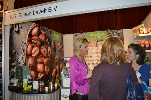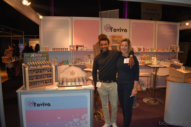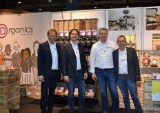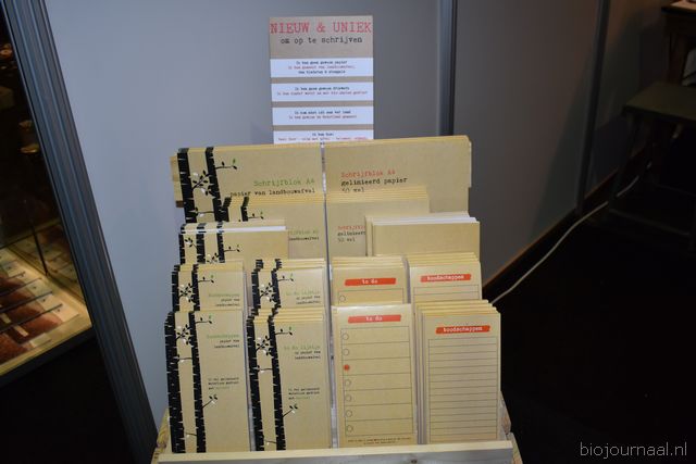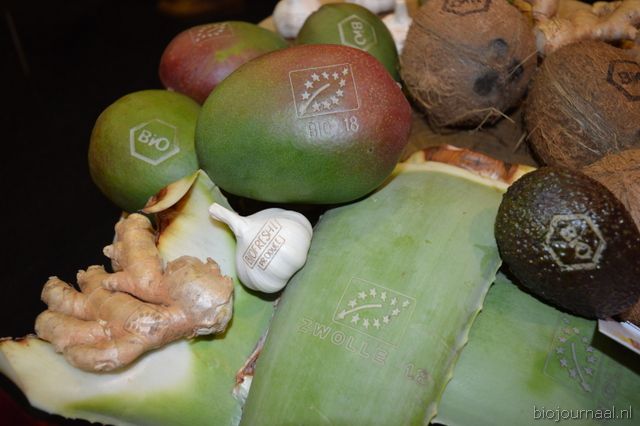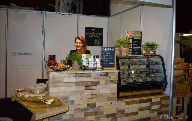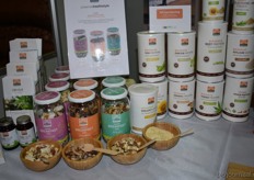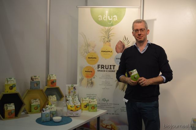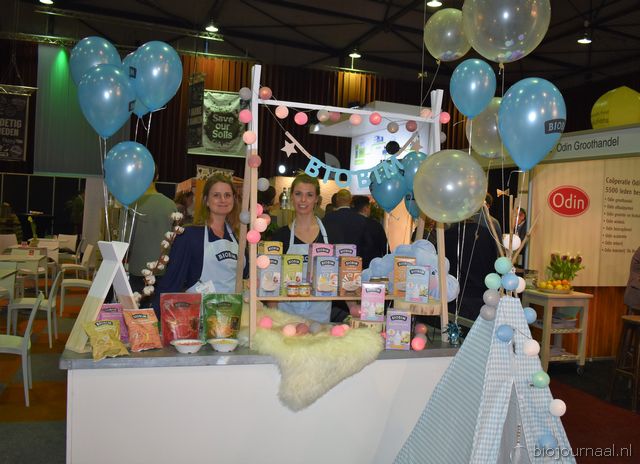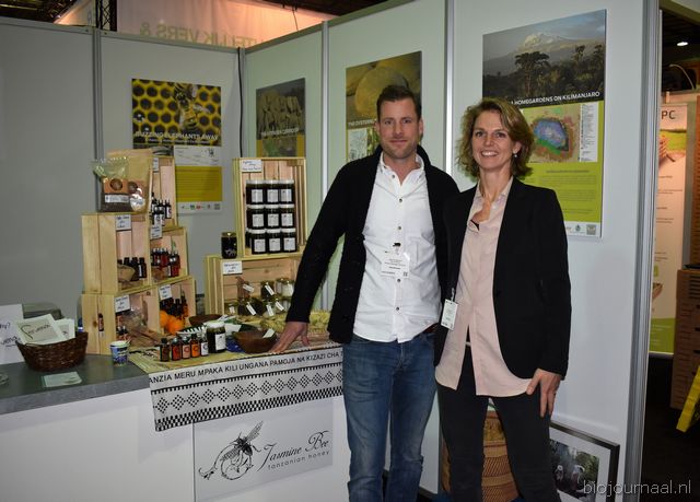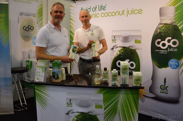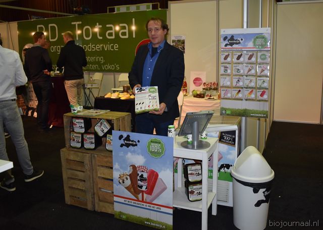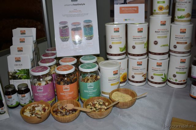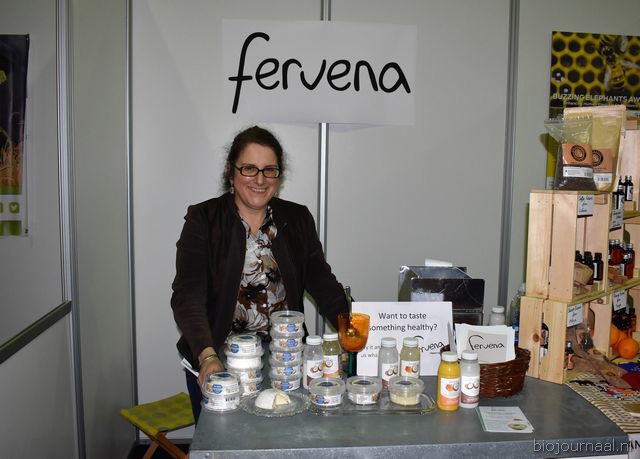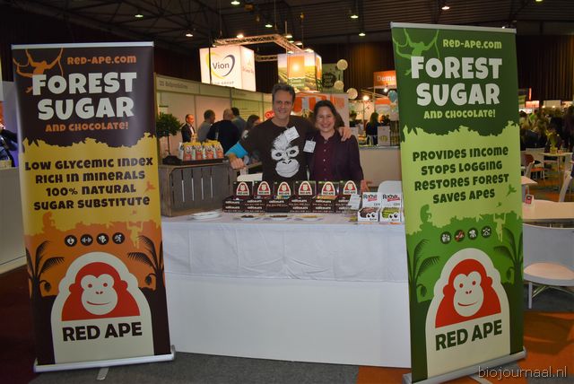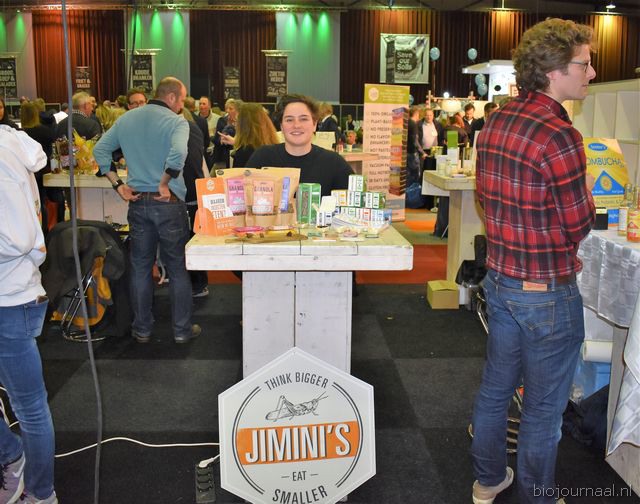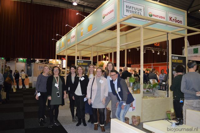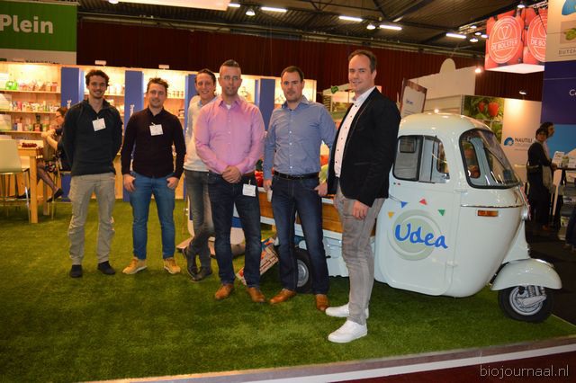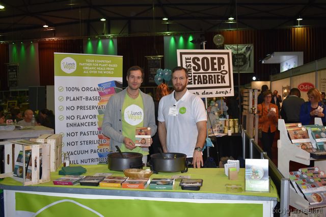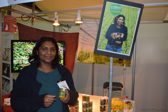 Herco Schoemaker, Sandy Vree, Rutger Bolten en Jetse Schokker van ID Organics laten de bezoekers hun nieuwe producten zien en proeven. Zo hebben ze cashewnoten in vlies uit Vietnam, borrelnootjes en wilde walnoten uit de oerbossen. Allen bio èn fairtrade.