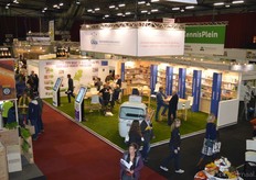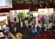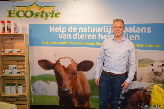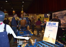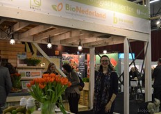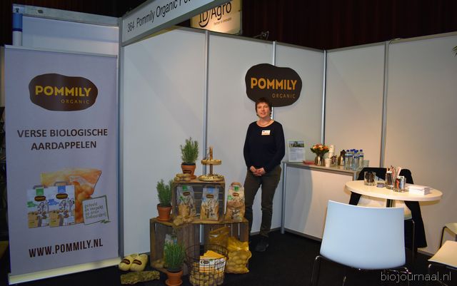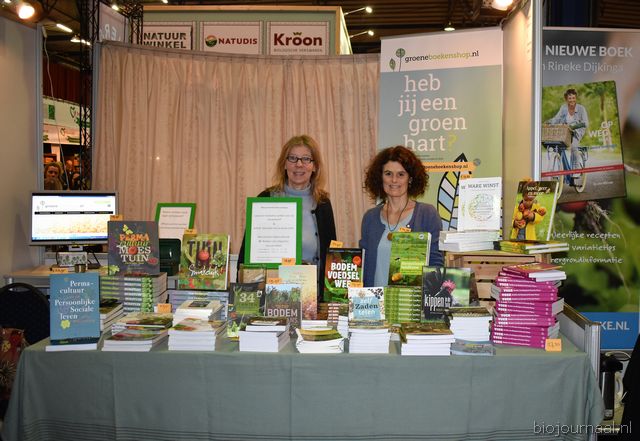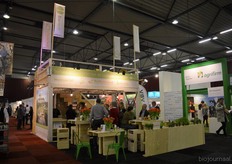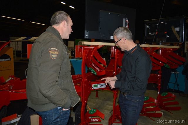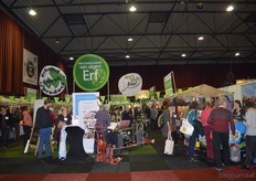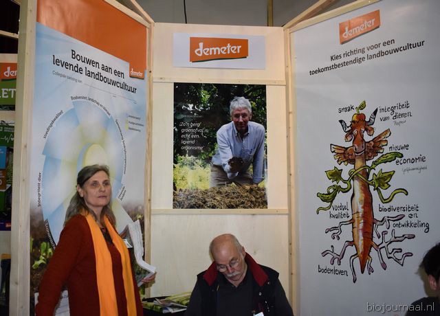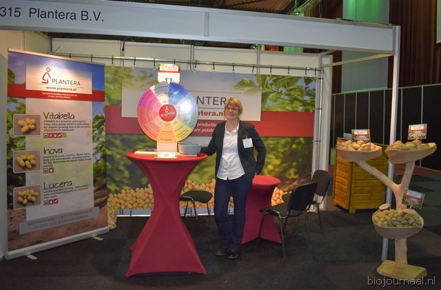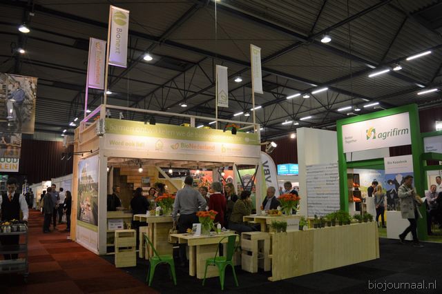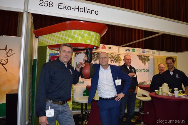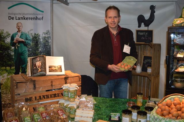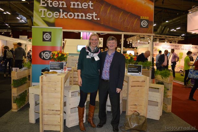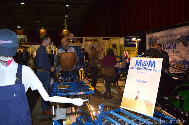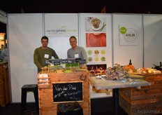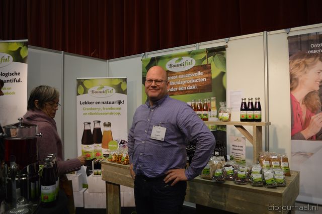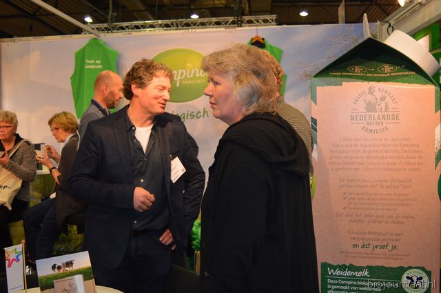 "Wim Stoker van Stoker Holland deelde zijn stand met Annelies Timmerman van Ecobulbs biologische bloembollen. Annelies: "Er is steeds meer vraag naar bio-bloembollen vanuit onder meer gemeenten en overheden. Zo heeft de SP in het noorden van het land onlangs een actie met het planten van bloembollen georganiseerd." Wim gaf aan dat het appelseizoen iets eerder klaar was, vanwege het mindere oogstjaar. Rechts Anton Oostveen van De Pruimenpot."