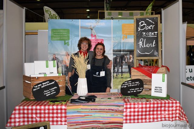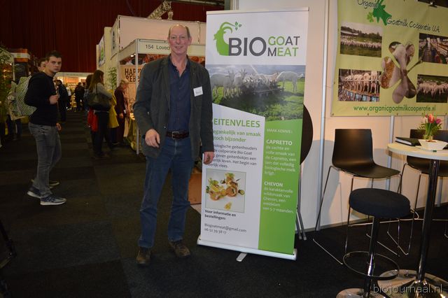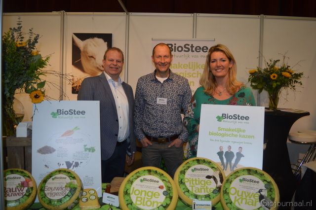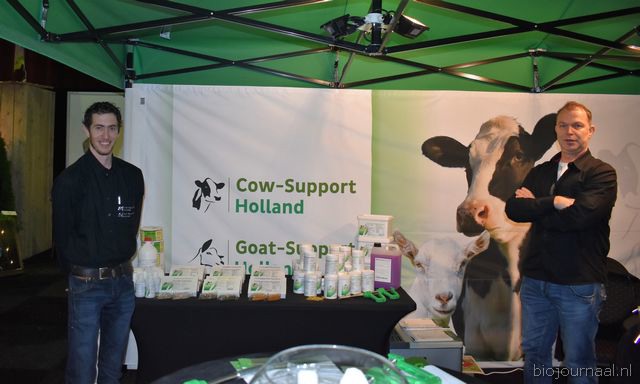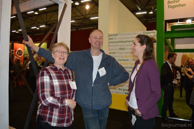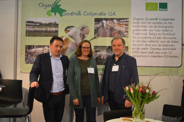 Ton van Wolfswinkel, Aafke van Tilburg en Johan Devreeze vertelden in dezelfde stand alles over de Organic Goatmilk Coöperatie.