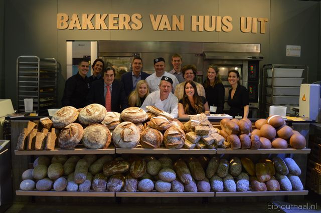 "Christine Vortkamp van de Konsequente BioBakker (vorig jaar overgenomen door Bakkerij Verbeek) tussen de bakkers. "De samenwerking gaat prima. We hebben heel verschillende broden immers, wij focussen ons meer op desem en wat zwaardere typisch Duitse broden."