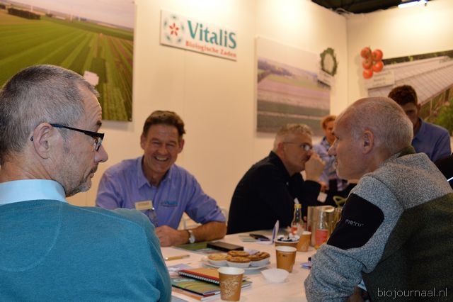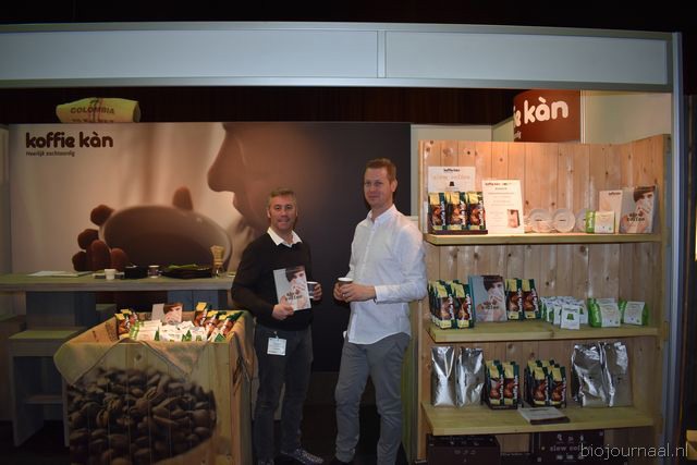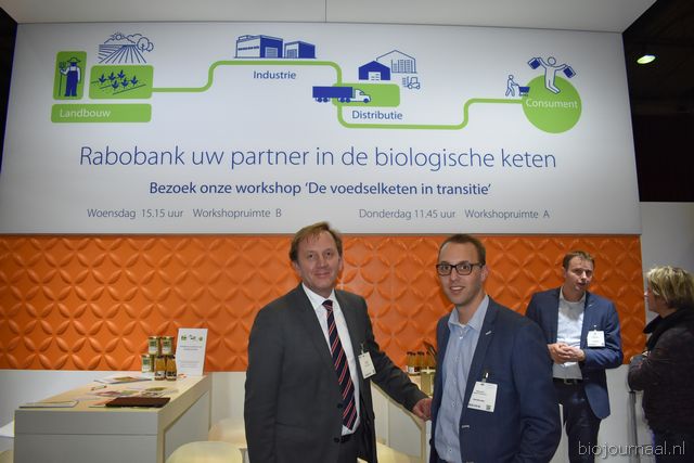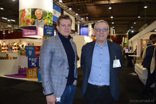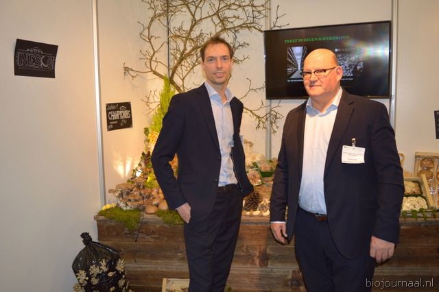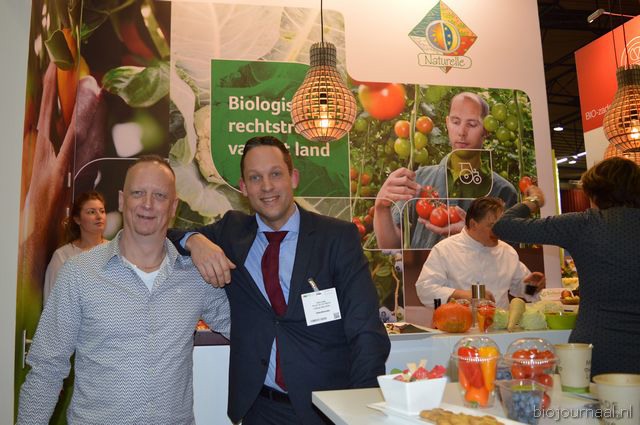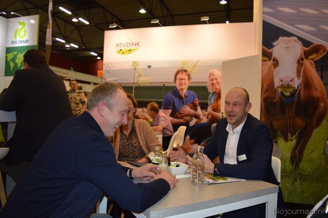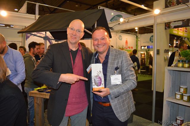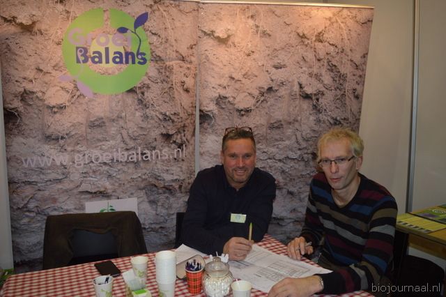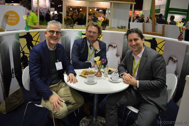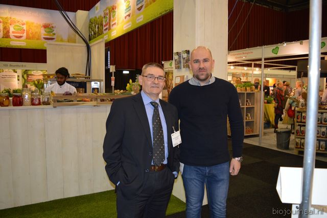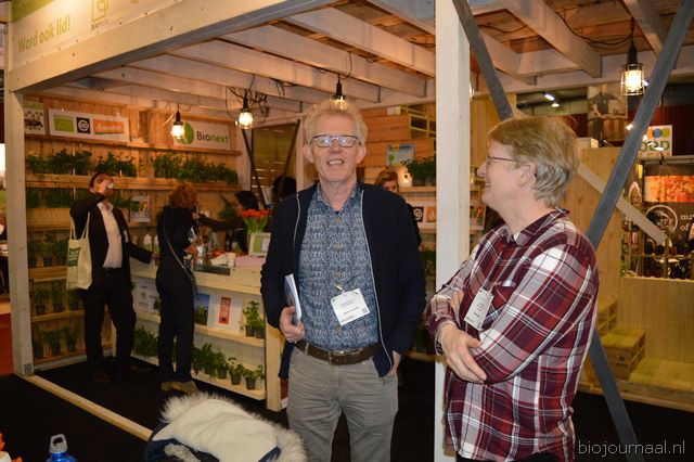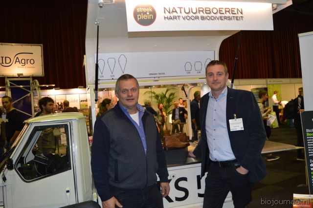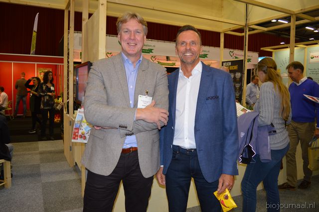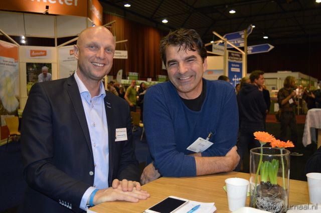 Op bezoek in de stand van Biojournaal: Paul van Schijndel (Rhumveld Winter & Konijn) en Oeble Kempenaar (High Quality Organics).