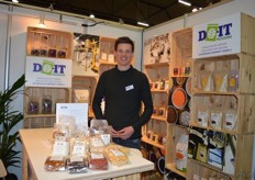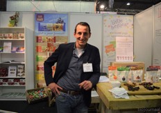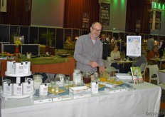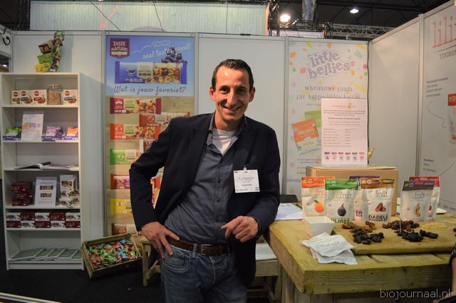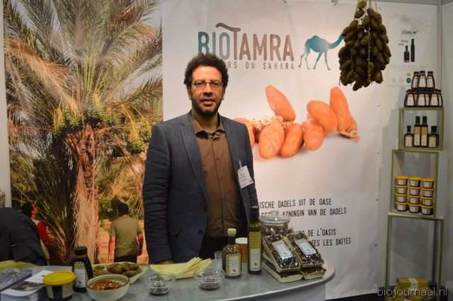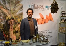 Krimo Azzouza van BioTamra. Hij was dit jaar voor het eerst aanwezig op de beurs. Ze presenteerden dadels maar ook producten waar dadels in verwerkt zijn zoals stroop en choco dadels.