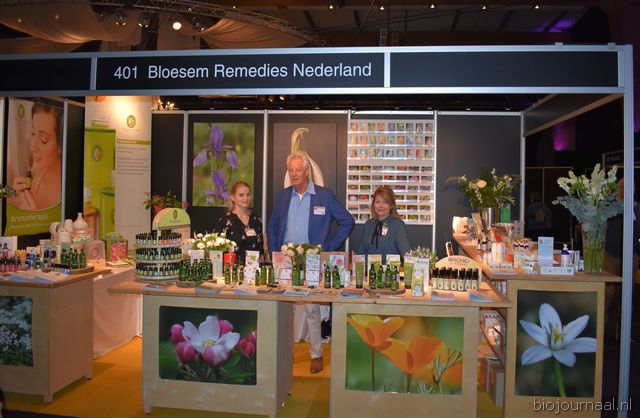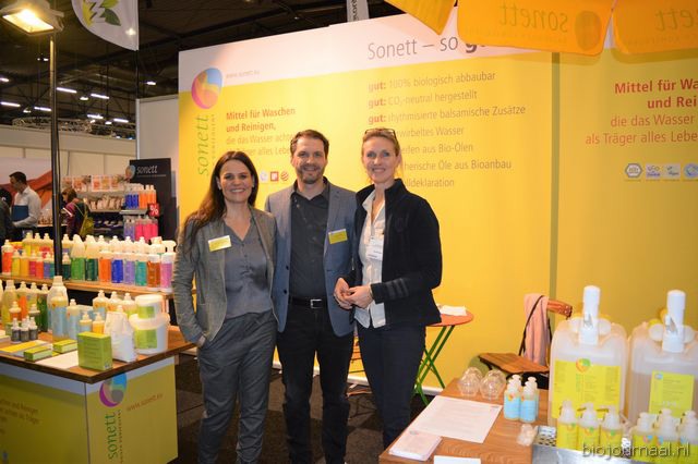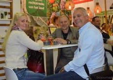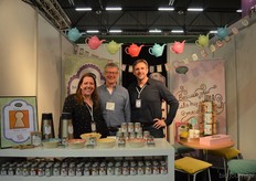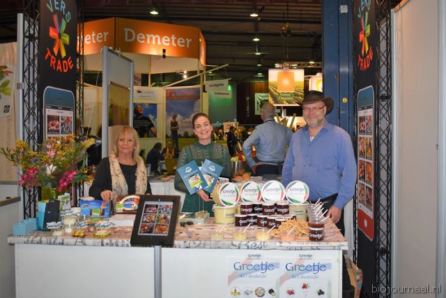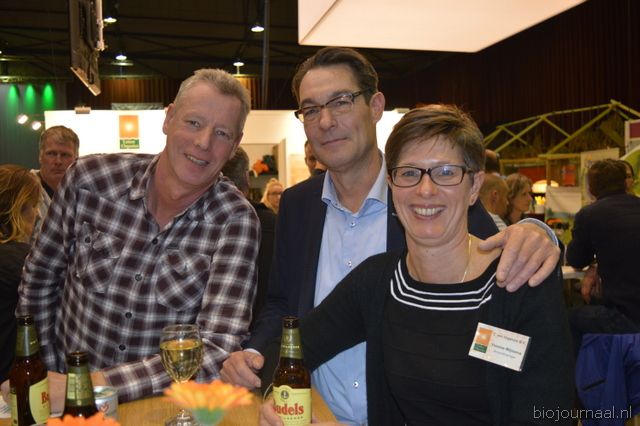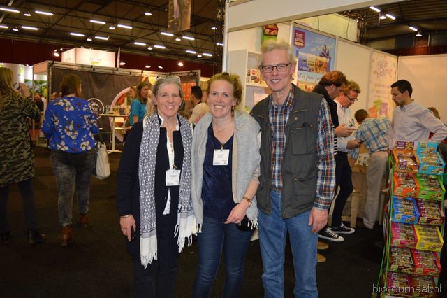 Astrid Weidmann en Rudi Gerding (De Groene Winkel Zeist) met in het midden hun dochter Laura. De ondernemers waren twee dagen van de partij op de Bio- beurs.