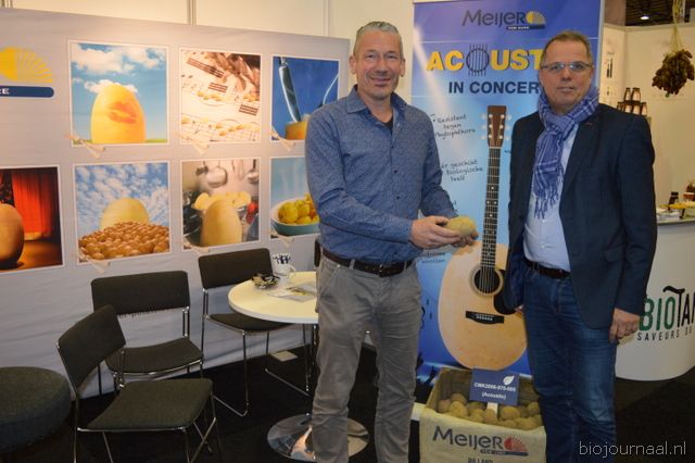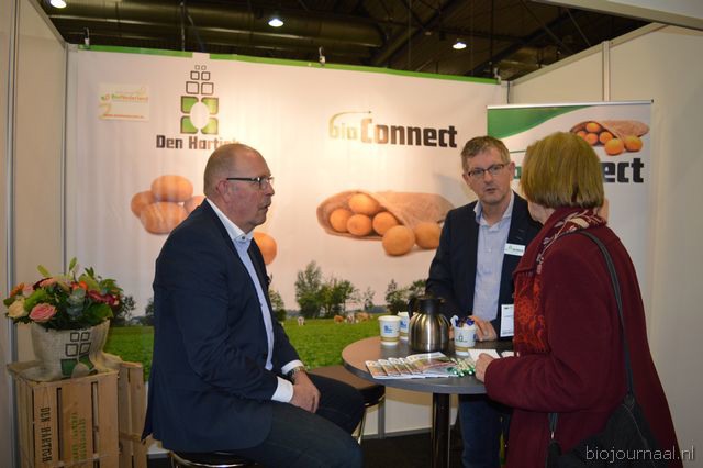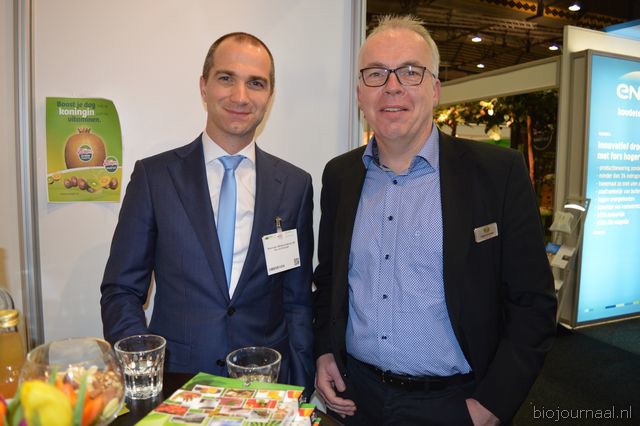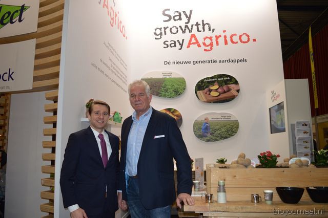 "Marnix Wilms en Jaap Hartkamp bij Agrico. Marnix: "We beschikken over een heel pakket resistente bio- aardappelrassen. De Bio-beurs is van oorsprong een telersbeurs, inmiddels weet de retail hem ook goed te vinden."
