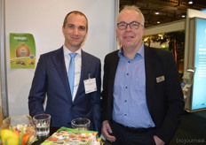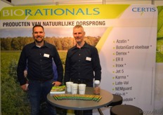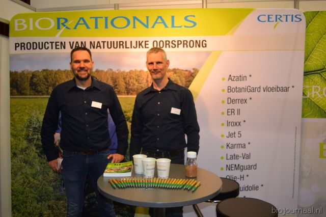 Maarten van der Marel en Fokke Smit van Certis. Zij stonden met Biorationals, een greep uit het biologische assortiment.