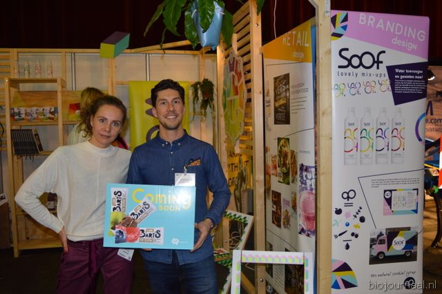 Ook nieuw op de beurs waren OD Designstudio met op de foto Sanne Kanters en Philip van Gelder. Zij zijn een designstudio voor onder andere verpakkingen en branddesign.