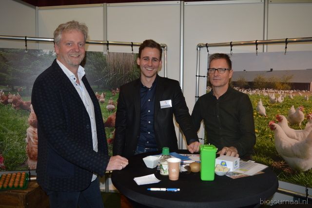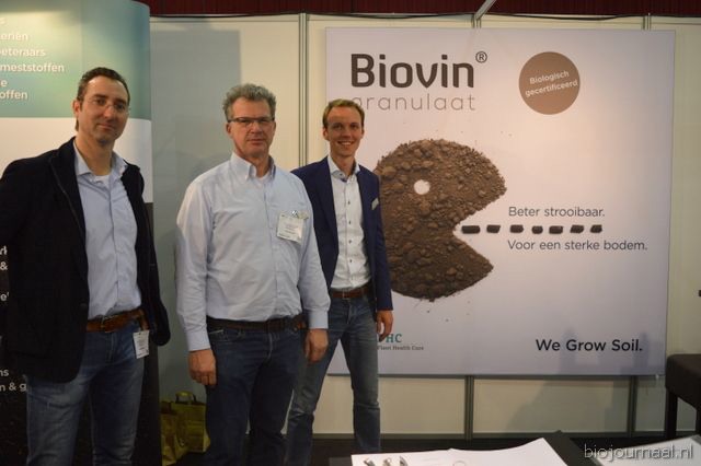 Raymond Notermans, Johan Middelkamp en Marinus Kiep van Plant Health Cure. Zij presenteerden Biovin Granulaat, een oud product in een nieuw jasje, nu voor zelfs 42m strooibaar, uniek voor een dergelijk product.
