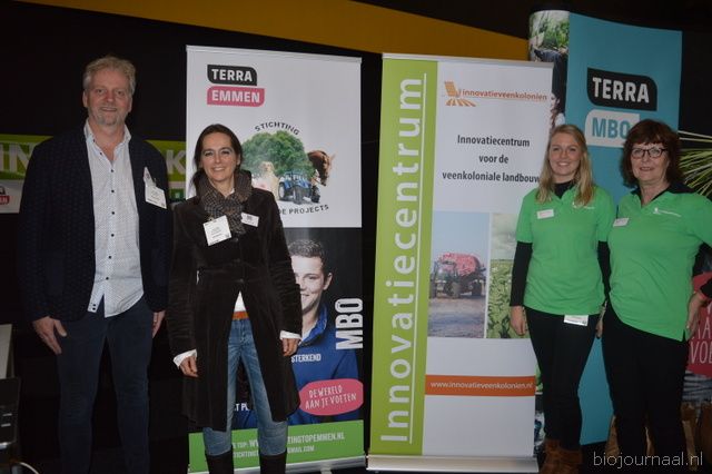 Gerrit Katerberg en Ine Sturkenboom van Terra Emmen en rechts Rieke Grooten en Patty Kooger van Innovatie Veenkoloniën.