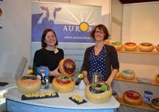 "Anne Schoenmakers en Esther Boekee van Aurora Kaas. De dames toonden trots de vernieuwde etiketten. Anne: "Hierdoor is veel beter de variant te herkennen." Anne heeft de Aurora Gold Smoked Chili in haar handen."