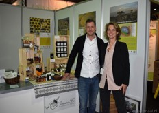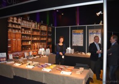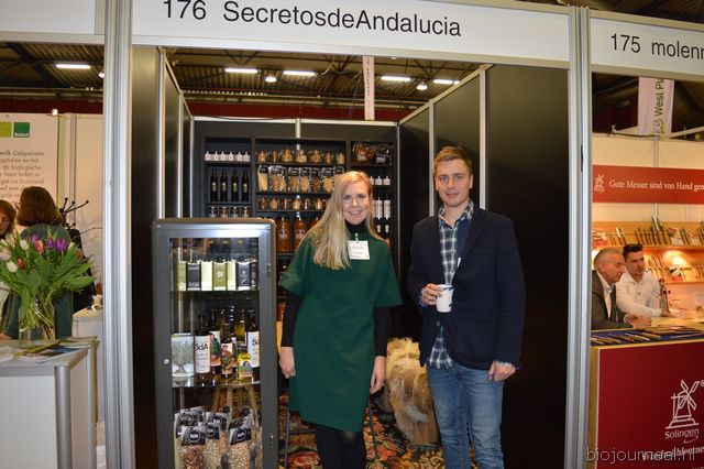 "Mirjam van den Beuken en Siebren Burghgraef presenteerden het aanbod van Secretos de Andalucia. Mirjam: "Het assortiment bestaat uit onder meer noten, azijnen, olijven en olijfolie. Tot nu toe zijn de producten vooral in de horeca en delicatessenwinkels verkrijgbaar."